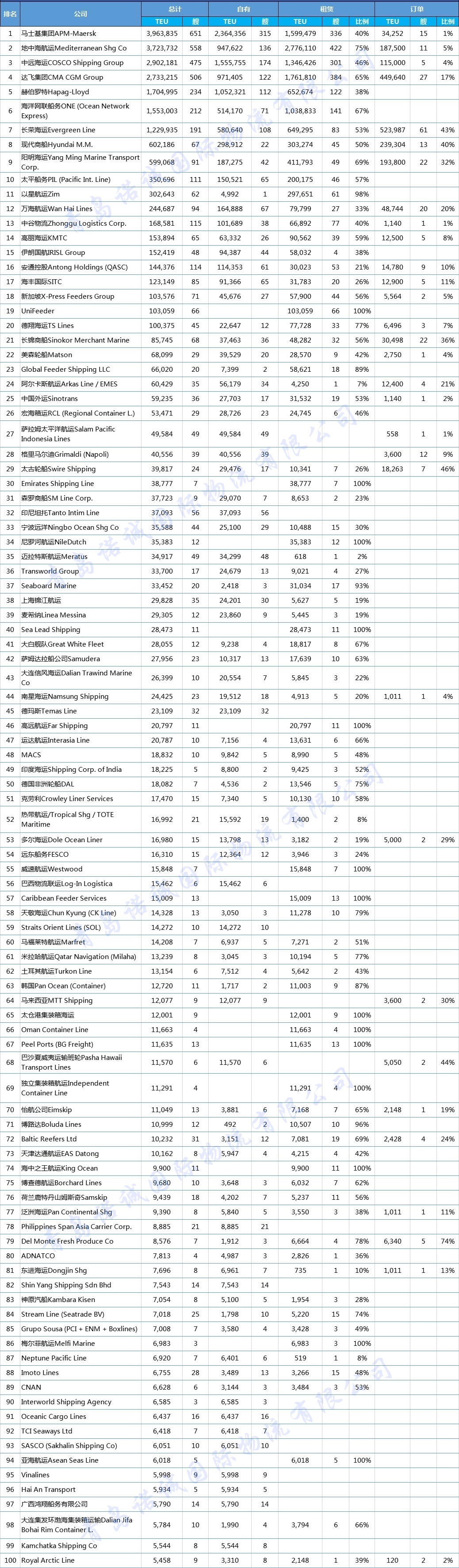 船公司運(yùn)力百?gòu)?qiáng)名單(截至20200703)
